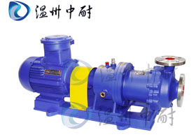 高溫磁力驅(qū)動(dòng)離心泵(簡(jiǎn)稱高溫磁力泵)通常由電機(jī),磁力偶合器,水冷卻裝置和耐腐蝕離心泵四大部分組成,其主要特點(diǎn)是利用磁力偶合器傳遞動(dòng)力。當(dāng)電動(dòng)機(jī)帶動(dòng)磁力偶合器的外磁鋼旋轉(zhuǎn)時(shí),磁力線穿過間隙和隔離套,作用于內(nèi)磁鋼上,使泵轉(zhuǎn)子與電動(dòng)機(jī)同步旋轉(zhuǎn),無機(jī)械接觸地傳遞扭矩。在泵的動(dòng)力輸入端,由于液體被封閉在靜止的隔離套內(nèi),沒有動(dòng)密封因而無泄漏。磁力偶合器的磁性材料采用耐高溫型稀土永磁材料,能承受280度以下的高溫介質(zhì)而保持強(qiáng)大的磁力扭矩。在電機(jī)與磁力偶合器之間加裝了水冷卻裝置,防止泵送高溫介質(zhì)之熱量傳導(dǎo)至電機(jī),以保持電機(jī)的正常運(yùn)行,從而達(dá)到無泄漏輸送高溫介質(zhì)。